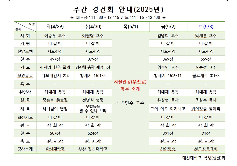 5/6 ~ 5/10 경건회 및 중식제공 안내