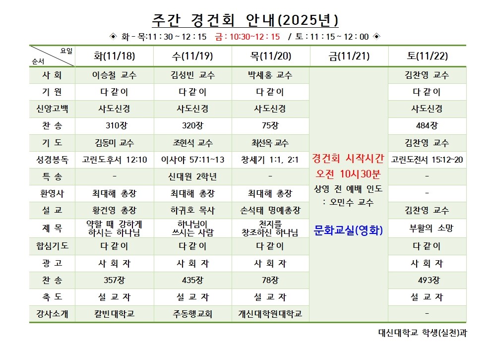 11월 4주차 (11월18일 - 11월22일) 경건회 안내
