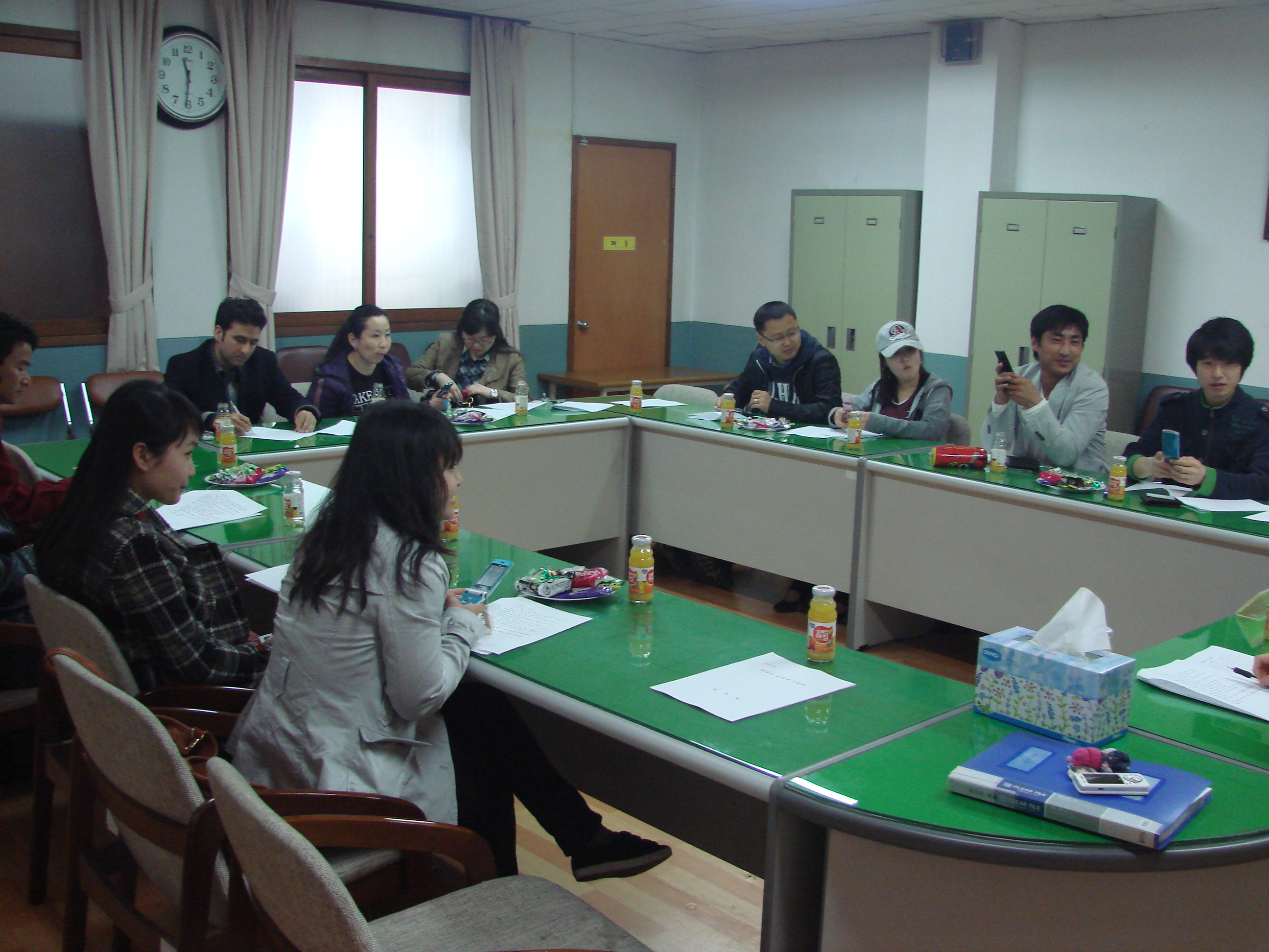 2010. 4. 5(월) 오전 11:00 본교 입학·힉생팀 주관으로 '10년도 외국인 유학생 간담회가 열렸다. 입학·학생팀처장 이철승 교수의 학교소개 및 유학생활 잘 할수있게 격려까지 해주셨으며, 모두 한 자리에 모여 서로들간 얼굴도 익히고, 소개하는 시간을 가졌다. 마무리로 다같이 점심식사도 함께 하는 시간을 가졌다. |