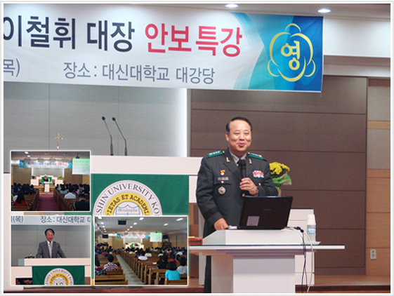 ![]() ![]() 본교는 제2작전사령관 이철휘 대장을 초청하여 학생, 교직원을 대상으로 ‘안보특강’을 실시하였다. 이철휘 대장은 우리나라의 역사 속에서 열강(列强)으로부터의 외침(外侵)을 시대별로 소개하면서 “역사를 통해 국력이 약한 나라는 상대적으로 국력이 강한 나라에게 고난을 받아왔다.”고 설명하면서 “국가안보는 사상과 이념을 초월하여 우리 모두가 굳건히 해야 할 국가적인 과제”라고 역설하였다. 또한 북한이 추구하는 주체사상의 허구성과 실체에 대하여 체계적으로 설명하였고, 특강 후반에는 본교의 상황을 고려하여 지도자의 Leadership을 기독교적인 관점에서 '십자가의 Leadership'으로 재해석하여 참석자들의 공감을 얻기도 하였다. 마지막으로 솔개의 자기혁신(革新) 과정을 소개하면서 학생들에게 긍정적인 사고와 적극적인 행동으로 이 나라 미래의 주역이 되어 줄 것을 당부하며 특강을 마무리하였다. |