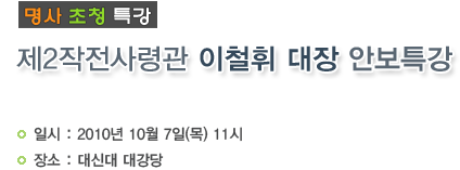 | [명사초청특강]제2작전사령관 이철휘 대장 안보특강 | |||||||||
