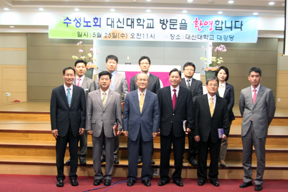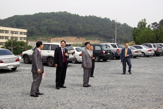 2011학년도 1학기 네 번째 본교방문 노회인 수성노회(노회장 권성수 목사, 대구동신교회 시무) 임원단이 본교를 방문하였다. 이미 선약(先約)된 일정과 겹쳐 임원들이 많이 참석하지는 못했지만, 본교에서 요청한 노회방문의 약속을 지켜주신 것은 본교로서는 큰 힘이 된다. 본교방문 일정에 따라 본교 뒷산 종합관 신축 부지현장을 관람하면서 그 동안의 진행되어온 학교 현황을 설명하였다.