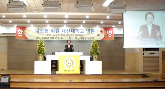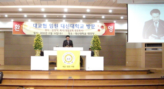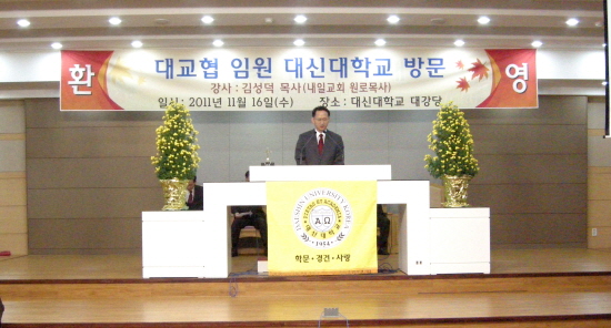 2011년 11월 16일 대구사랑, 교회사랑협의회(회장 김성덕 목사) 임원단에서 본교를 방문하였다.