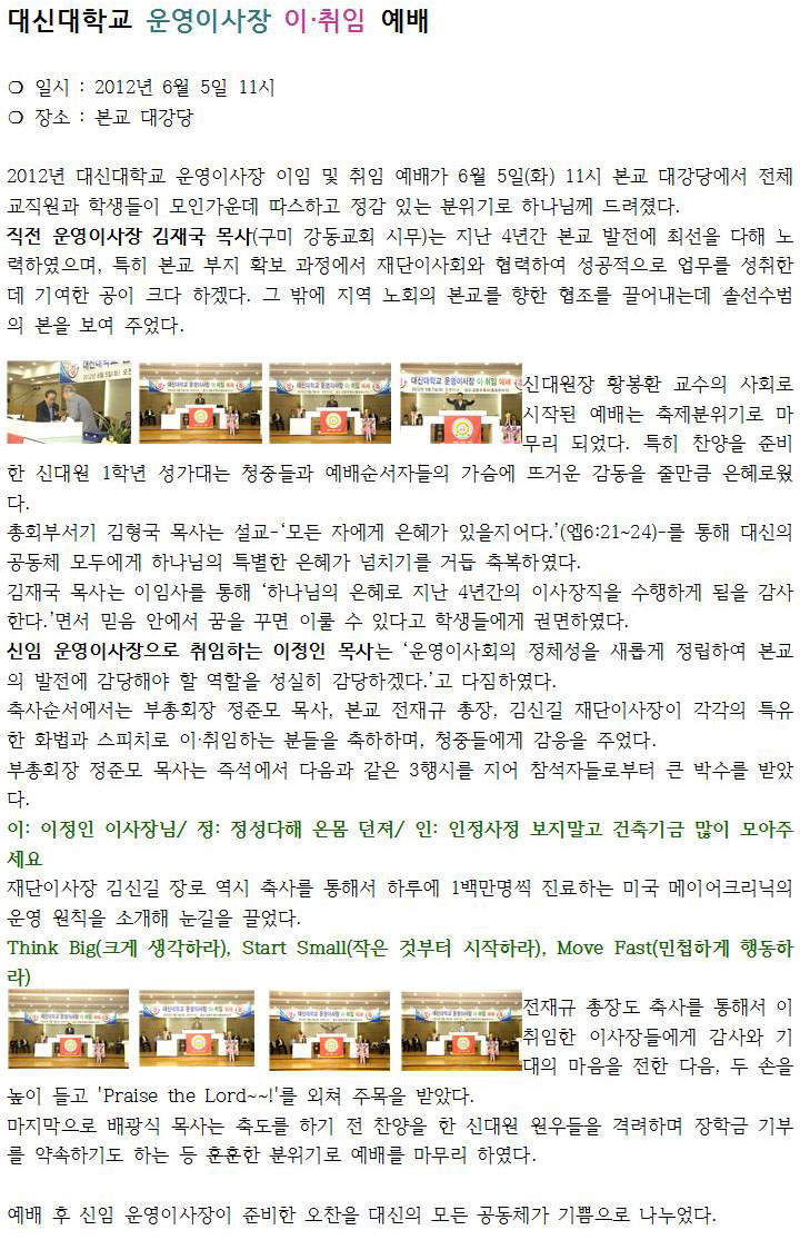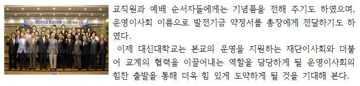 대신대학교 운영이사장 이·취임 예배