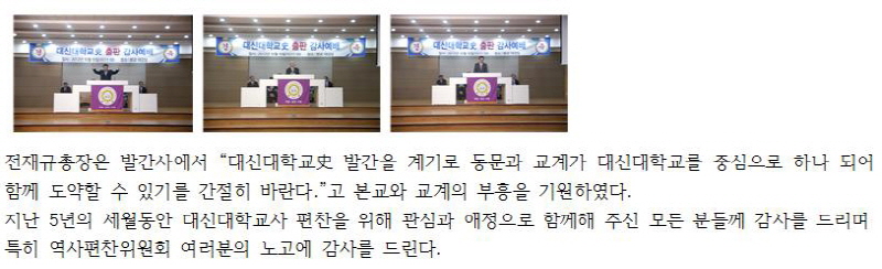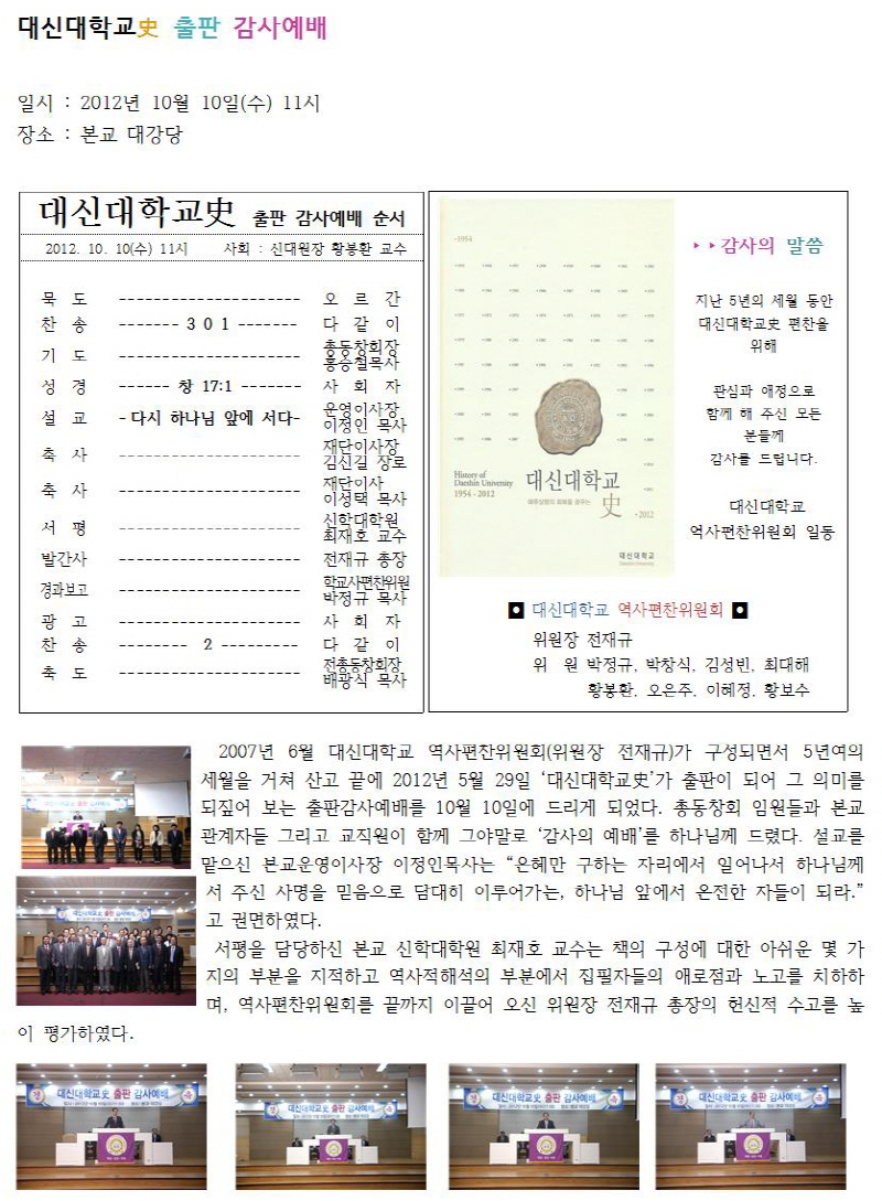 대신대학교史 출판 감사예배