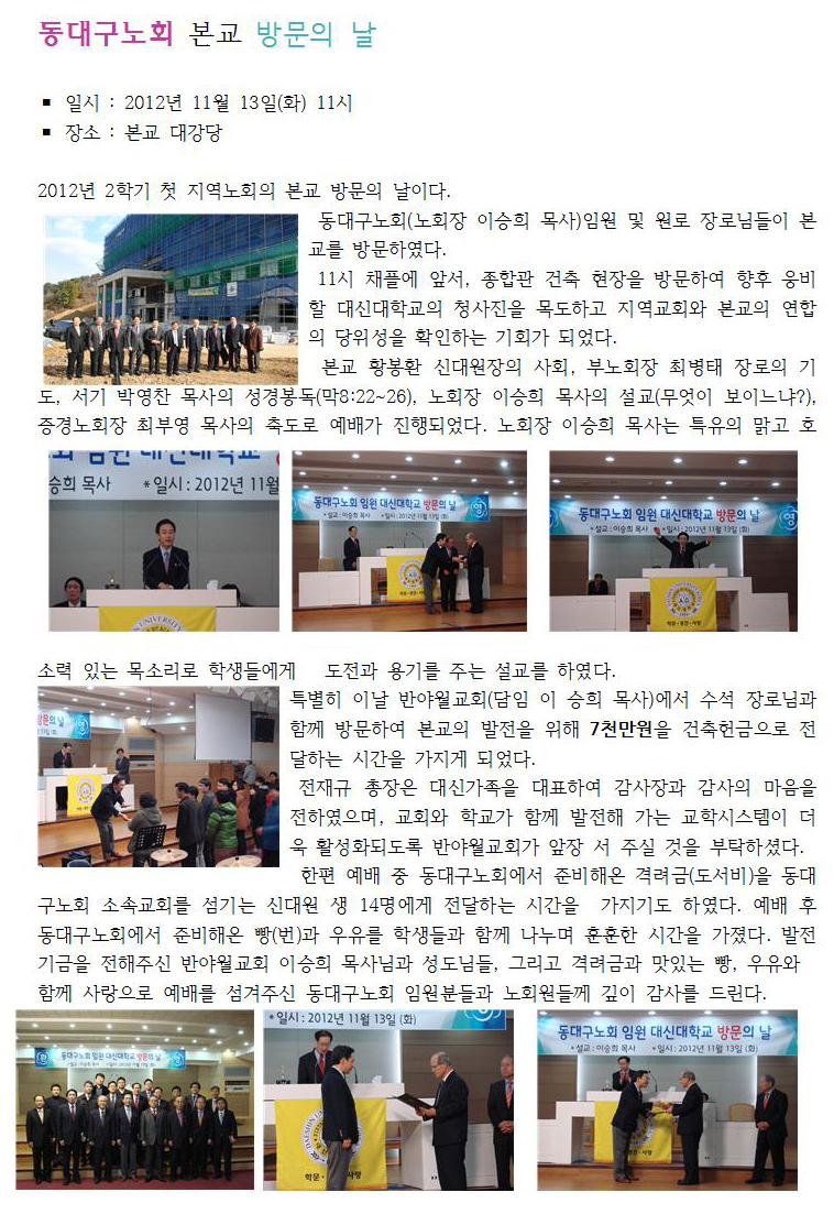 동대구노회 본교 방문의 날