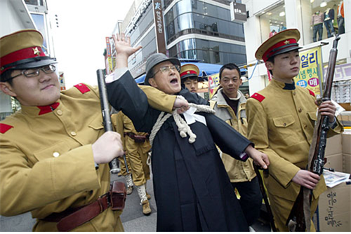2003년 2월 28일 오후 2시. 대구 경상감영공원은 온통 태극기와 만세 물결로 가득 찼다. 손에 태극기를 든 학생, 시민 등 1천여 명이 발 디딜 틈 없이 모였다. 기미독립선언문이 마이크를 타고 흘러나오자 갑자기 나타난 일본 헌병대가 단상을 점거하고 독립선언문을 강탈했다. 이에 질세라 모였던 군중이 목이 터져라 '대한독립만세'를 외쳤다. '탕, 탕' 이에 놀란 일본 헌병들이 시위대를 향해 총을 쏘고 무참히 폭력을 가했다. 일부 시위대들은 굵은 끈으로 포박당해 연행되면서도 대한독립만세를 외쳤다. 사람들 머릿속에서 잊혔던 '3`1운동'의 역사가 대구에서 84년 만에 부활한 것이다. 이 행사를 되살린 숨은 공로자가 있다. 3.1운동 정신 알리기에 앞장서고 있는 전재규(76) 대신대 총장이다. 이날 전 총장은 가슴에는 태극기를 달고 검은색 두루마기를 입은 채 3`1운동을 진두진휘했다. 이후 전 총장은 10년째 3`1운동의 역사를 시민들에게 알리고 올바른 역사 의식을 고취시키고 민족 주체성을 재정립하는 데 앞장서고 있다. '3`1운동길' 발굴, '3`1운동 기념관 설립'을 추진하는가 하면 매년 재연 행사를 펼치는데 주도적으로 참여하고 있다. 30년이 넘게 동산의료원에서 마취과 의사로 외길 인생을 걸어오다 3 `1운동의 역사 알리기에 앞장서며 의사로 변신한 것이다. 의사(醫師)이자 의사(義士)이기도 한 김 총장을 최근 대신대에서 만났다. ◆3.1운동의 발자취를 더듬다. 의사로서 탄탄대로를 달리던 전 총장이 대구의 독립운동에 관심을 두게 된 것은 1999년 계명대 동산병원 개원 100주년 편집위원을 맡으면서부터다. 당시 편집위원으로 활동하며 다양한 사료를 정리하던 중 대구지역 3`1운동의 발상지가 바로 동산병원 언덕이었다는 사실을 알게 된 것이다. "대구 사람들은 흔히 지역의 3`1운동이 서문시장에서 시작된 것으로 알고 있습니다. 그러나 옛 지도에서 지금의 서문시장 자리는 연못이었습니다. 아마 '큰장'(서문 밖 시장)을 지금의 서문시장으로 오인한 것이 아닌가 생각합니다. 당시 큰장은 현재 섬유회관 자리에서 달성공원 인근까지였습니다." 제대로 된 역사 자료를 고증하려고 서울 등지를 돌며 자료 수집에 나섰다. 옛 문헌과 생존자들의 증언에서부터 선교사들이 주고받은 편지까지 일일이 번역해가며 정확한 대구 3`1운동의 발자취를 더듬어 나갔다. 그러던 중 독립만세운동에 참여했던 여규진 선생을 만나면서 의문의 실마리가 풀렸다. "여 선생의 증언에 따르면 큰장 입구 강 씨의 소금집(현재 송월타월 자리) 달구지 위에서 오후 3시에 독립선언문이 낭독되고 만세의 함성이 시작됐습니다. 종로초교(당시 희도학교)에서 찾아냈던 지도 2장에 기록된 사실과 정확하게 일치했습니다." 이후 이 같은 역사적 사실을 집대성해 '동산병원과 대구 3`1독립운동의 정체성'이라는 제목의 책을 출간했다. 이듬해에는 대구시에 건의해 '대구 3`1운동 길'을 지정받았다. "대구의 만세운동은 3`1운동이 시작된 지 일주일 후인 8일 날 시작됐지만 경북 지역으로 확산하는 시발점이었습니다. 5월 7일 청도에서 마감될 때까지 두 달간 1천206명이 사망하고 3천276명이 부상당하는 희생이 따랐지요. 시민들이 대구가 지역 독립운동의 중심지라는 사실을 인식해 자긍심을 갖고 역사를 복원할 필요가 있습니다." ◆뼛속까지 항일 "1944년 태평양 전쟁이 막바지로 다다를 즈음이었어요. 당시 동명교회에 다녔는데 일본군인들이 들이닥쳐 교회 종을 떼어갔습니다. 국등학교 2학년생이었지만 일본에 대한 막연한 적개심이 싹텄지요." 결혼 후 가슴속에서는 본격적인 반일 감정이 불붙기 시작했다. 처가에 있었던 일제 하의 고난을 듣고 나서부터였다. "끝까지 신사참배`창씨개명을 거부했던 장인어른(강금주)이 자식들에게까지 신사참배를 못하게 했어요. 아내를 비롯해 처남이 희도국민학교에 다녔는데 지각을 하는 등 여러 가지 핑계로 신사참배를 못하게 한 거지요. 결국 자의 반, 타의 반 모두 퇴학을 당했지요." 그 후 장인은 일본 경찰에 체포돼 모진 옥고를 치렀다. 여름철에 입었던 옷을 한겨울에도 갈아입지 못한 채 굶주림과 추위와 혹독한 고문에 시달려야 했다. 실신 또 실신. 결국 일본 경찰은 거의 반죽음 상태인 몸을 인력거로 싣고 와서 남산동 자택에 던져 버렸다. 구사일생으로 목숨을 건진 장인은 이후 항일운동에 앞장섰다. 이 같은 집안 내력 때문인지 3`1운동 정신은 대를 이어 가훈처럼 되어버렸다. "3`1운동에 관심을 안 둘 수가 없었지요. 결혼식 날짜도 1963년 3월 1일 오후 2시 독립선언문을 낭독했던 일시와 정확히 일치합니다. 결혼 장소도 3`1운동의 점화 장소인 제일교회였습니다. 5년 전 아들도 3월 1일 포항지역의 3.1운동이 열렸던 포항 제일교회에서 결혼식을 올렸지요." 이 같은 반한 감정 때문인지 70평생 지금까지 일본 여행을 한 번도 하지 않았단다. ◆의사이자 의사 전 총장은 국내 마취통증의학의 선구자로 통한다. 경북대 의대를 졸업하고 1966년 미국으로 건너가 클리버랜드 병원에서 국내에서는 생소한 마취과 전공의 수련을 했다. 당시 동산기독병원장이었던 마펫 박사로부터 마취과 의사로 와 달라는 편지를 받았