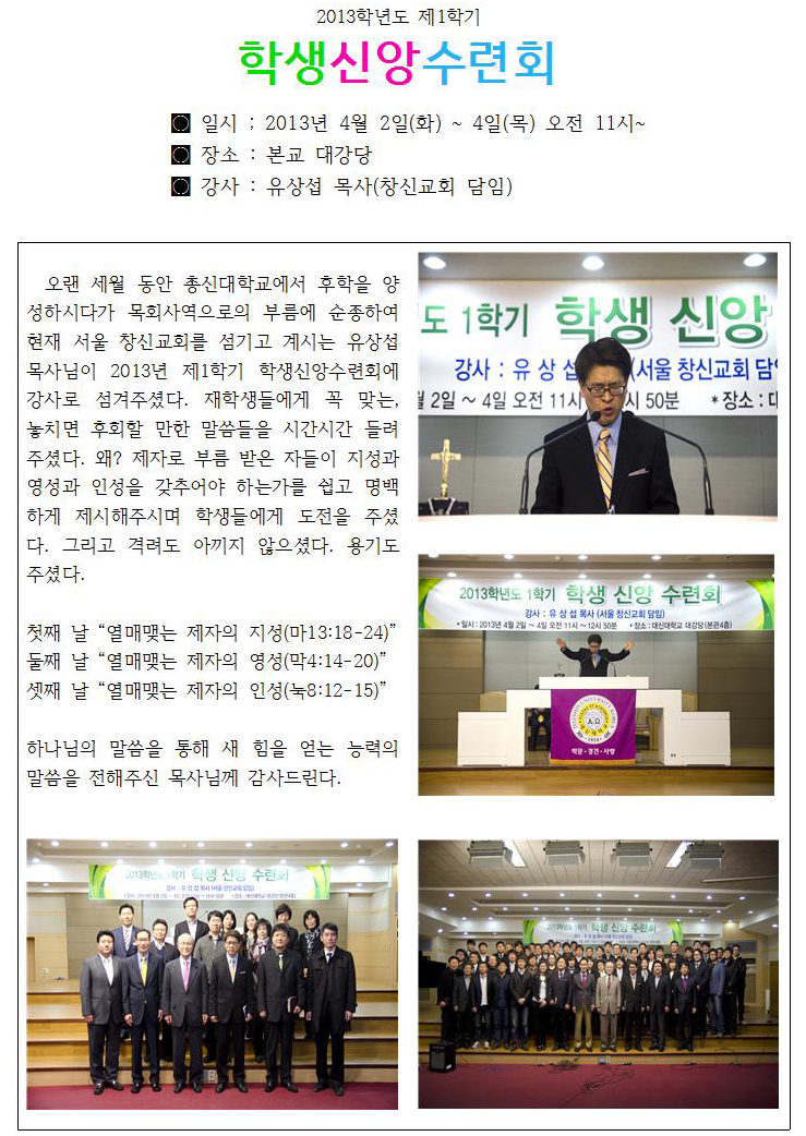 2013학년도 제1학기 학생신앙수련회