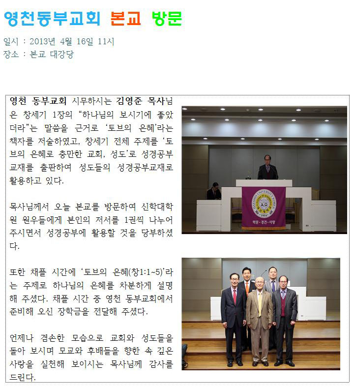 영천동부교회 본교 방문