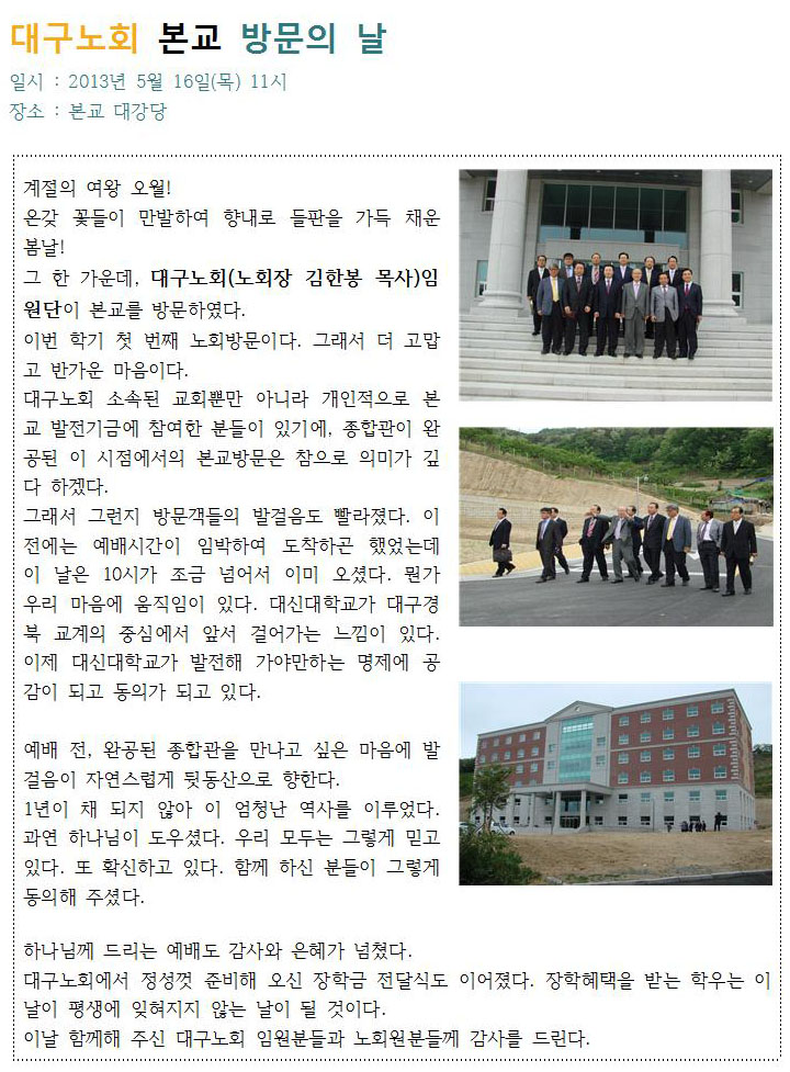대구중노회 본교 방문의 날
