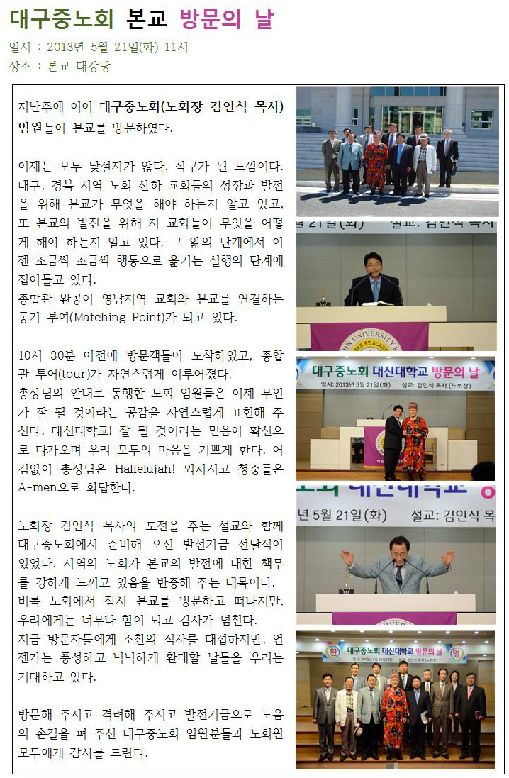 대구중노회 본교 방문의 날