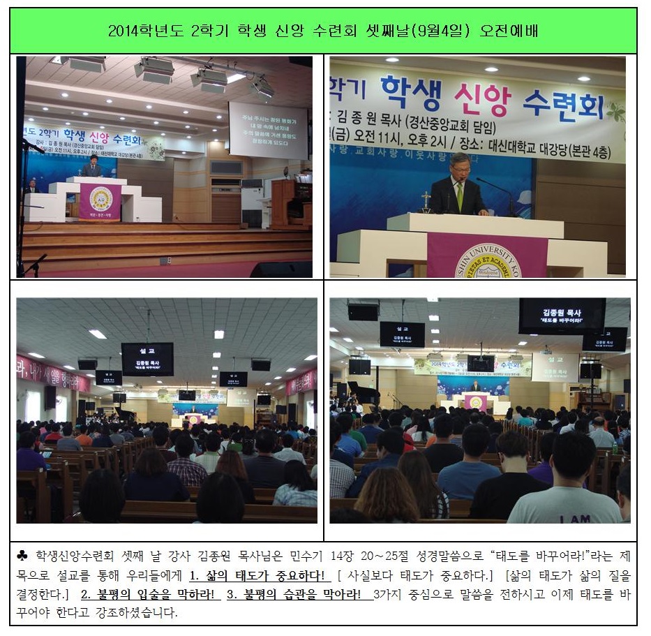2014학년도 2학기 학생 신앙 수련회 9월 4일 오전예배