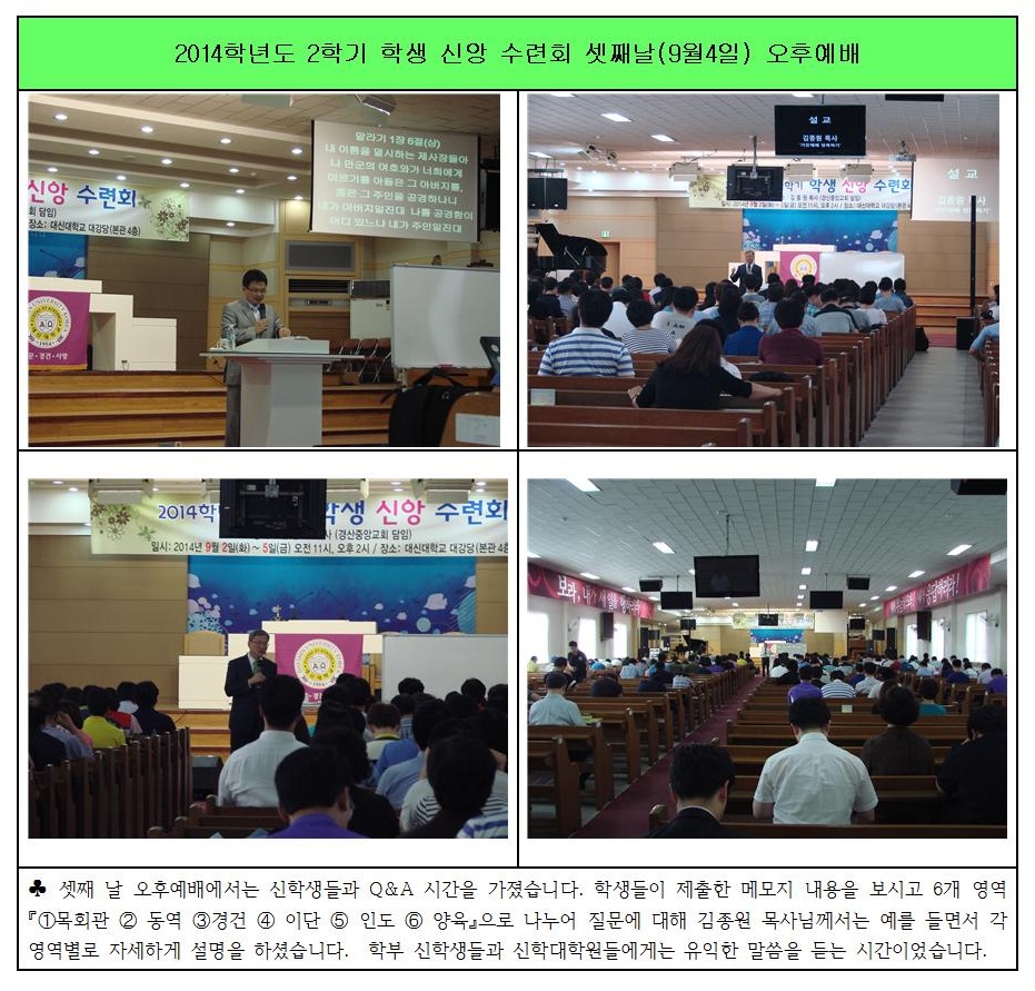 2014학년도 2학기 학생 신앙 수련회 9월 4일 오후예배