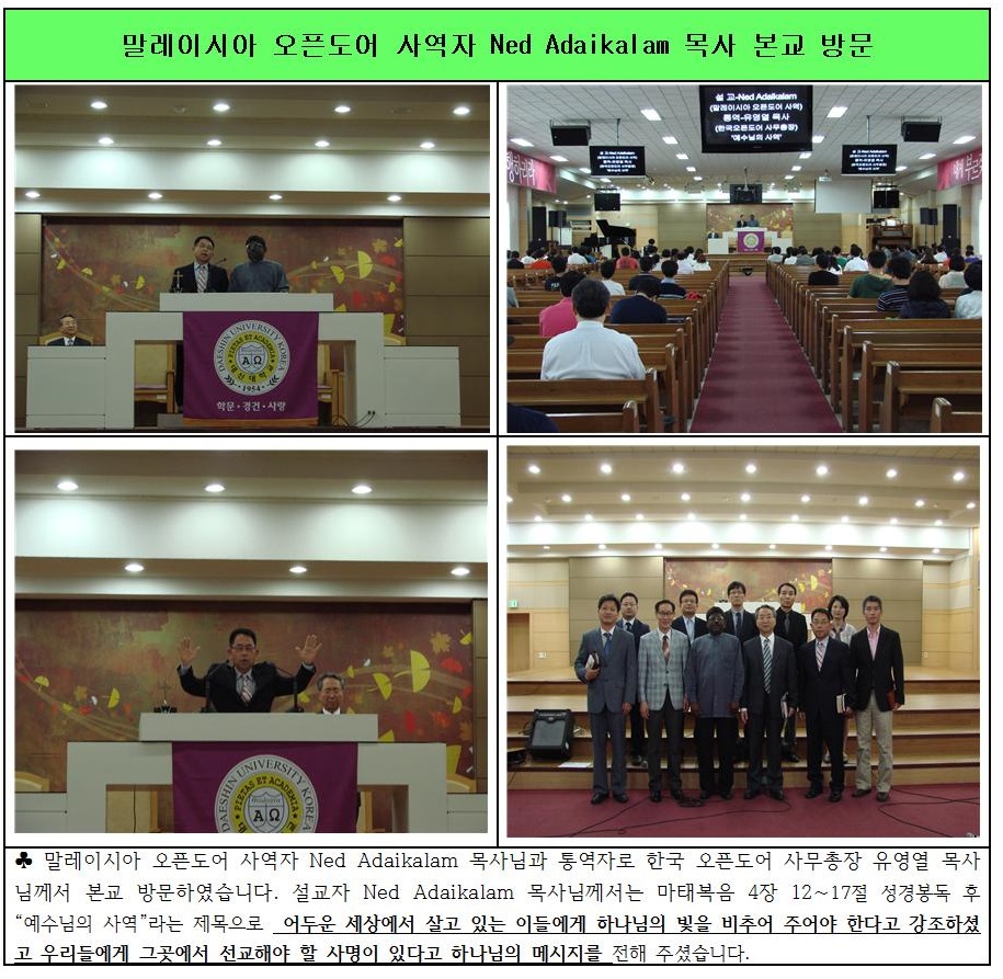 말레이시아 오픈도어 사역자 Ned Adaikalam 목사 본교 방문