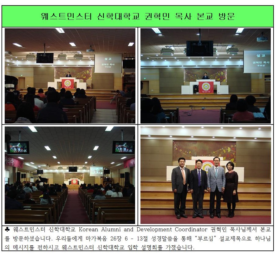 웨스트민스터 신학대학교 권혁민 목사 본교 방문