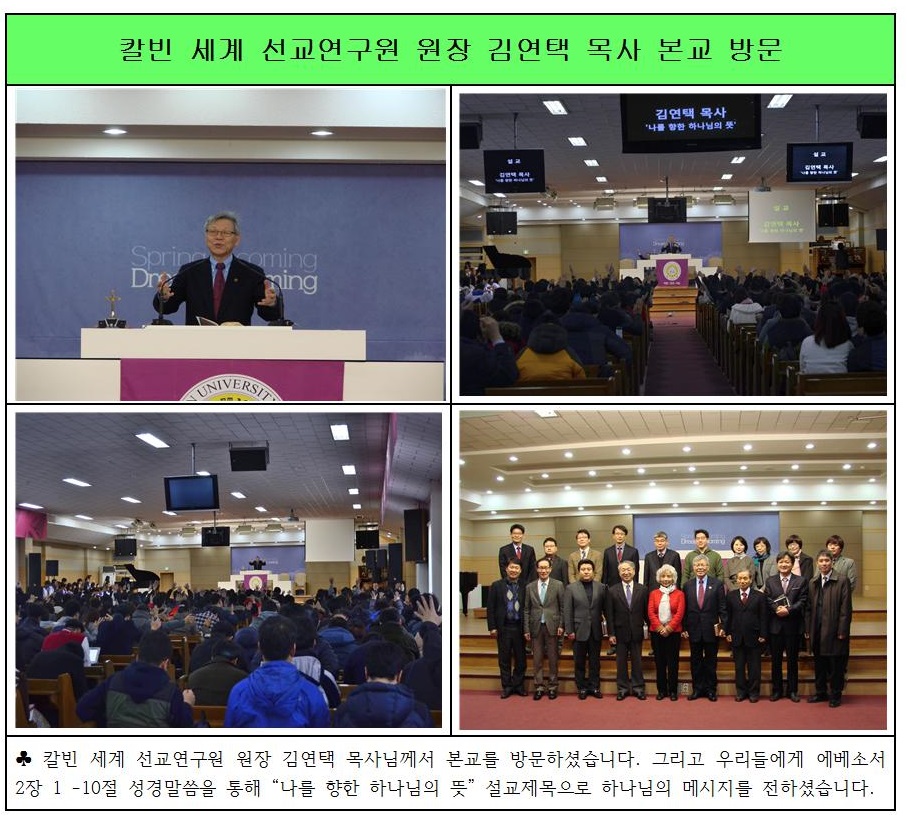 칼빈 세계선교연구원 원장 김연택 목사 본교 방문