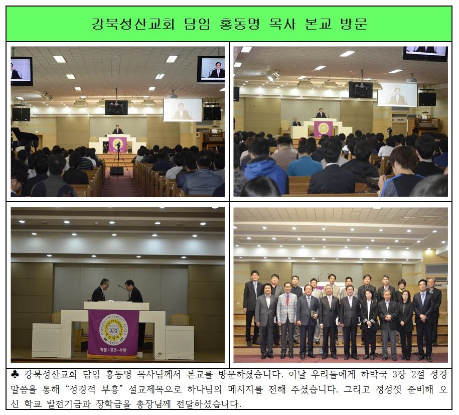 강북성산교회 홍동명 목사 본교 방문