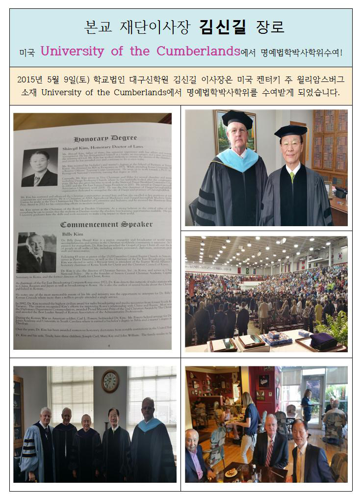 본교 재단 이사장 김신길장로 명예법학박사학위 수여
