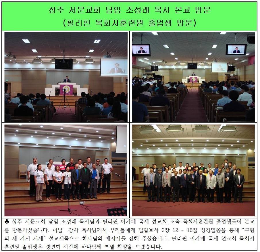 상주 서문교회 조성래 목사 / 필리핀 목회자 훈련원 졸업생 본교 방문