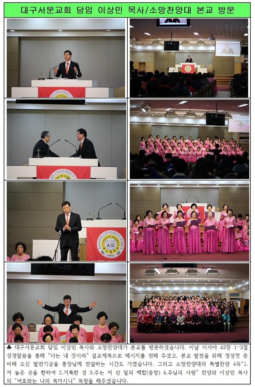 대구서문교회 이상민 목사 / 소망찬양대 본교 방문
