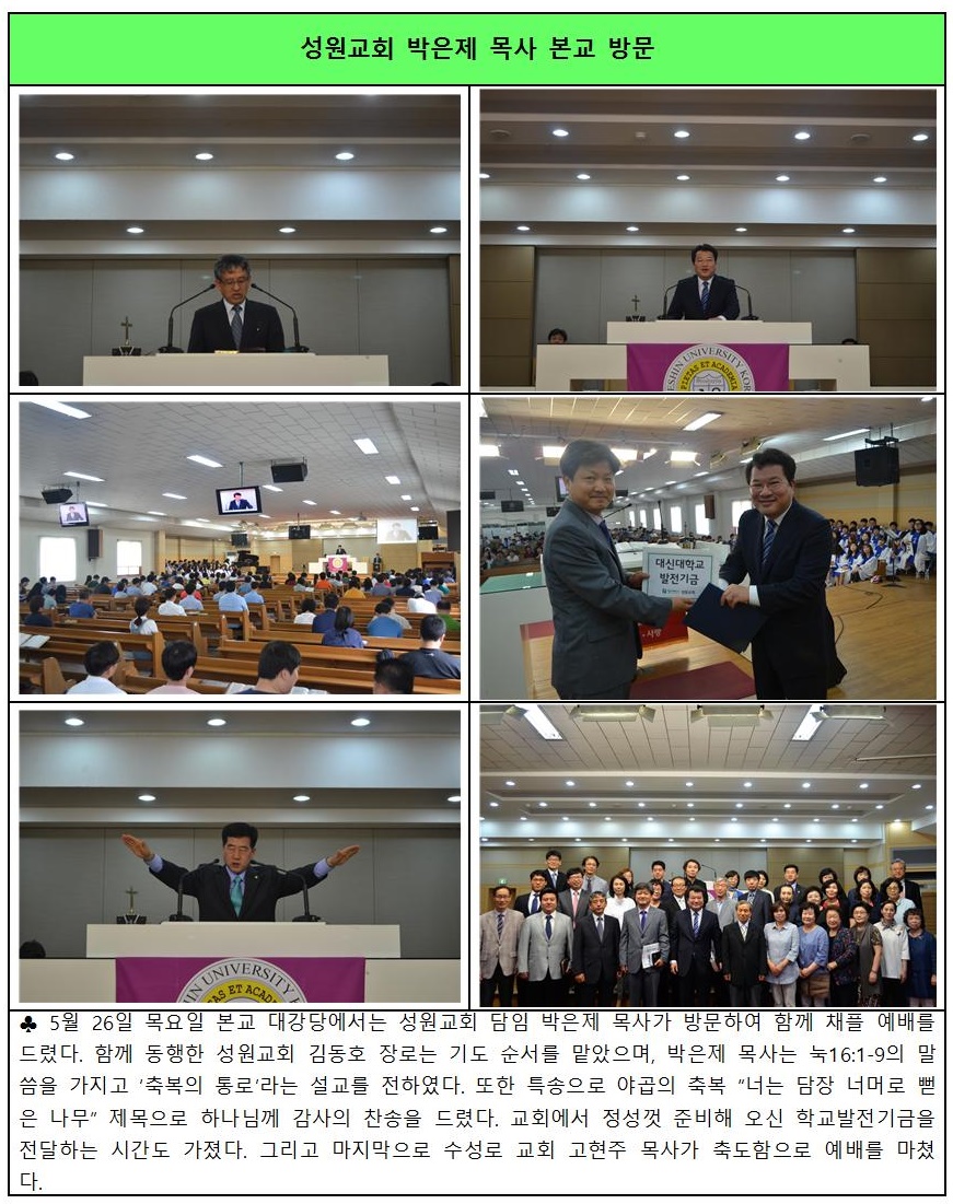 성원교회 박은제 목사 본교 방문