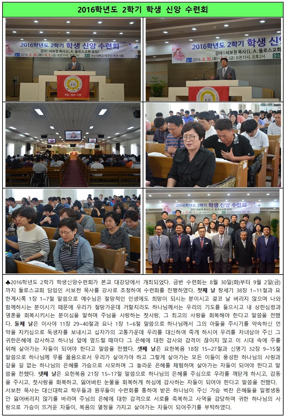 2016학년도 2학기 학생신앙수련회(서보천 목사)