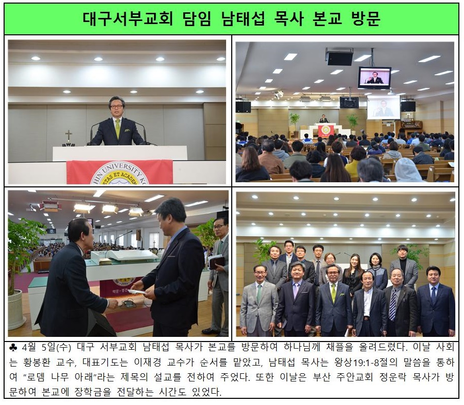 대구서부교회 담임 남태섭 목사 본교 방문