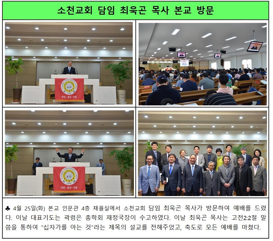 소천교회 담임 최욱곤 목사 본교 방문