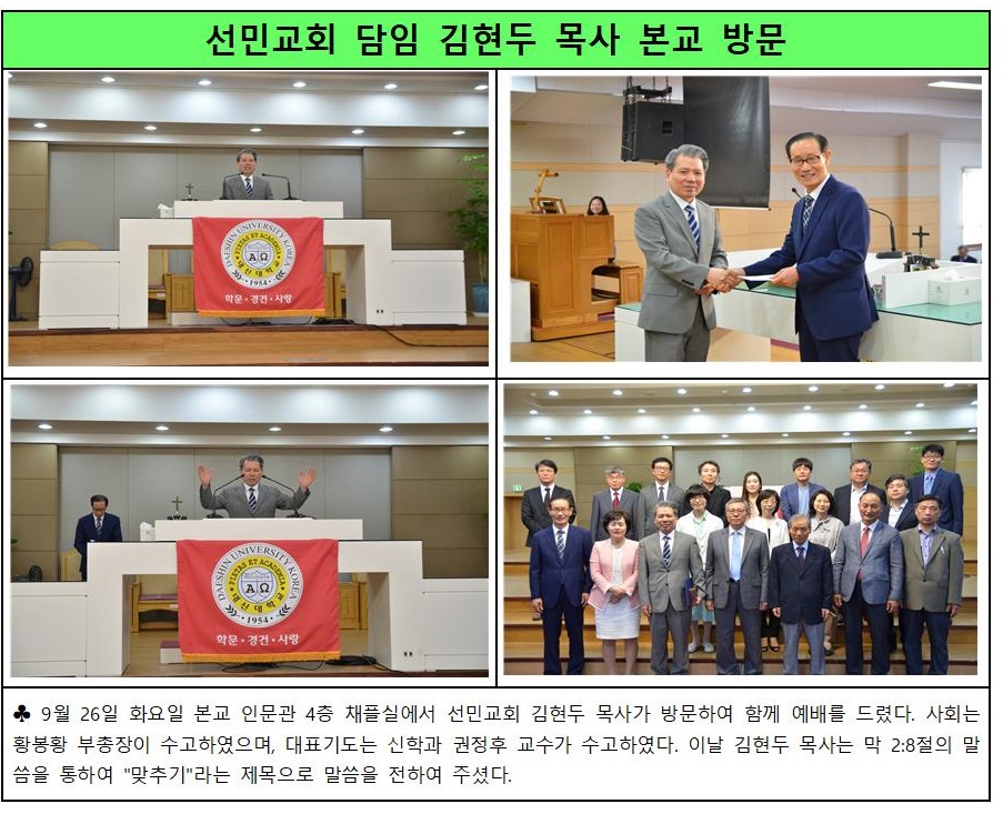 선민교회 담임 김현두 목사 본교 방문