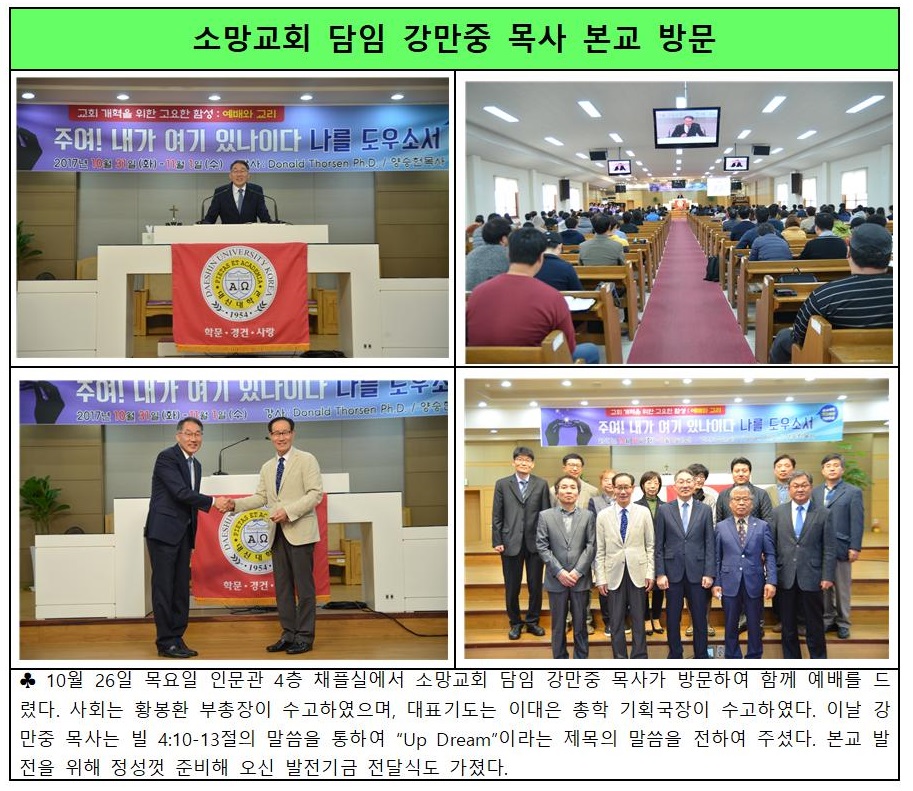 소망교회 담임 강만중 목사 본교 방문