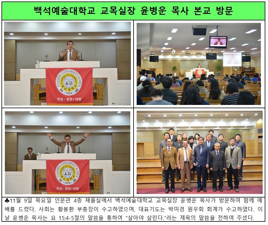백석예술대 교목실장 윤병운 목사 본교 방문