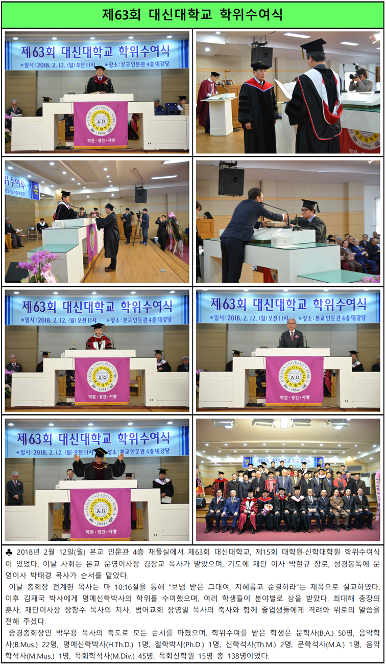 제63회 대신대학교 학위수여식