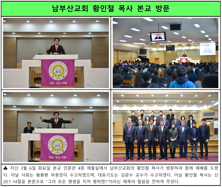 고든코엘 신학대학교 대외협력처장 김정일 목사 본교 방문