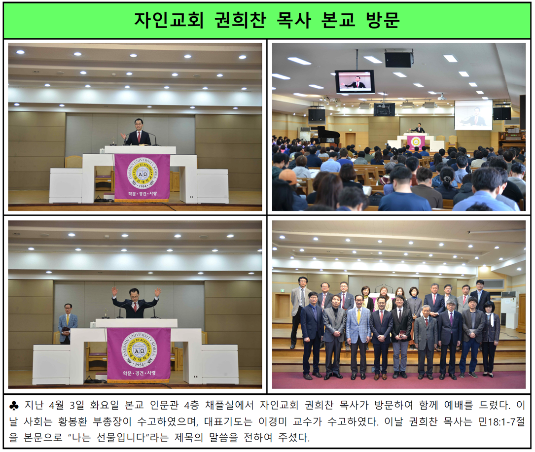 자인교회 권희찬 목사 본교 방문