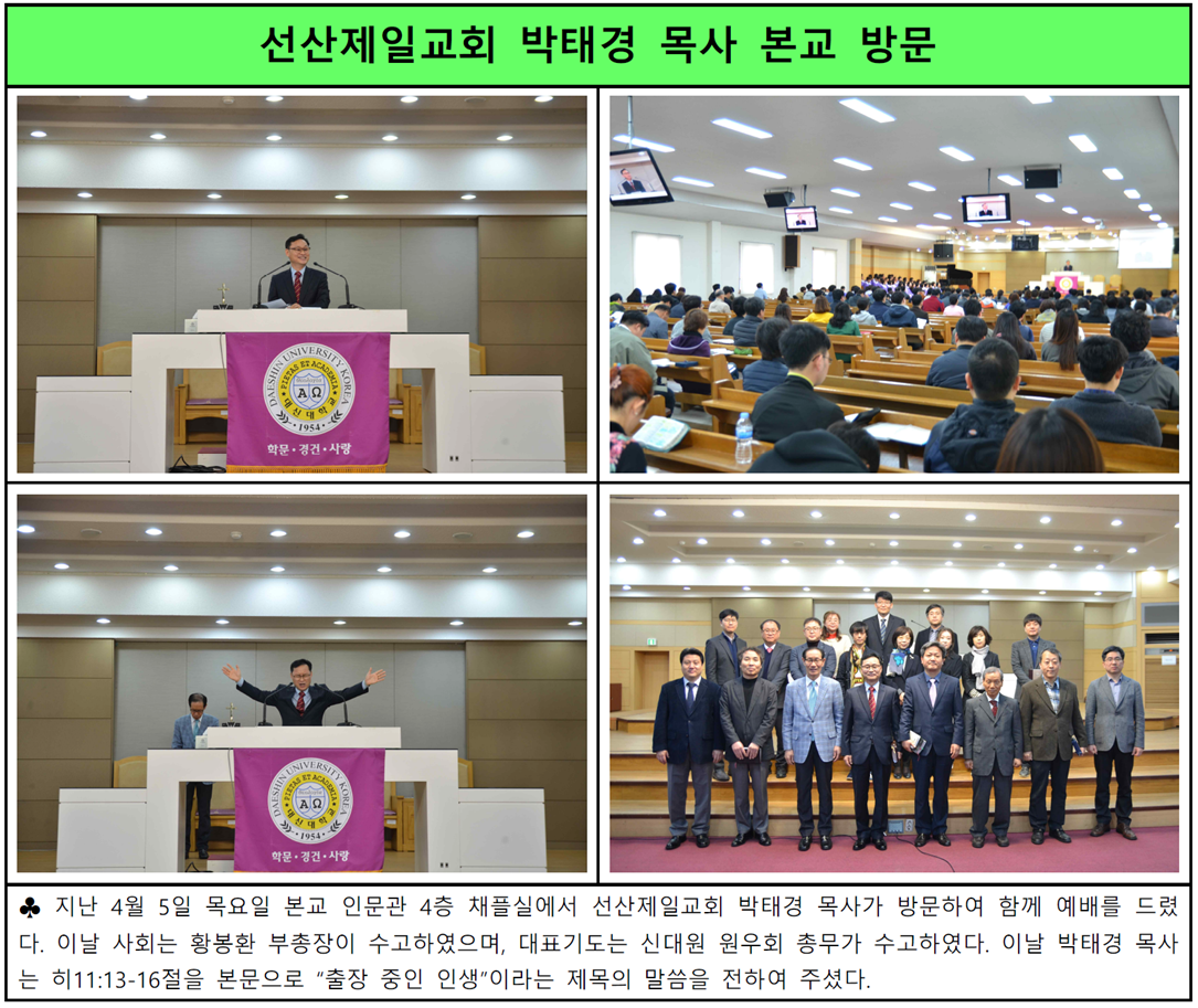 선산제일교회 박태경 목사 본교 방문