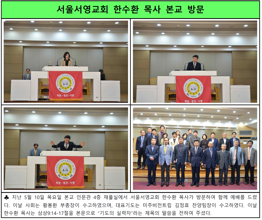 서울서영교회 한수환 목사 본교 방문