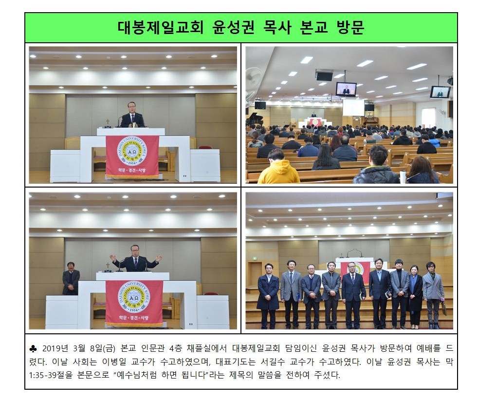 대봉제일교회 윤성권 목사 본교 방문