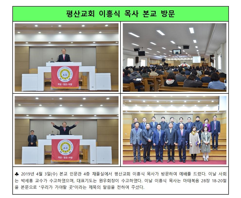 평산교회 이흥식 목사 본교 방문