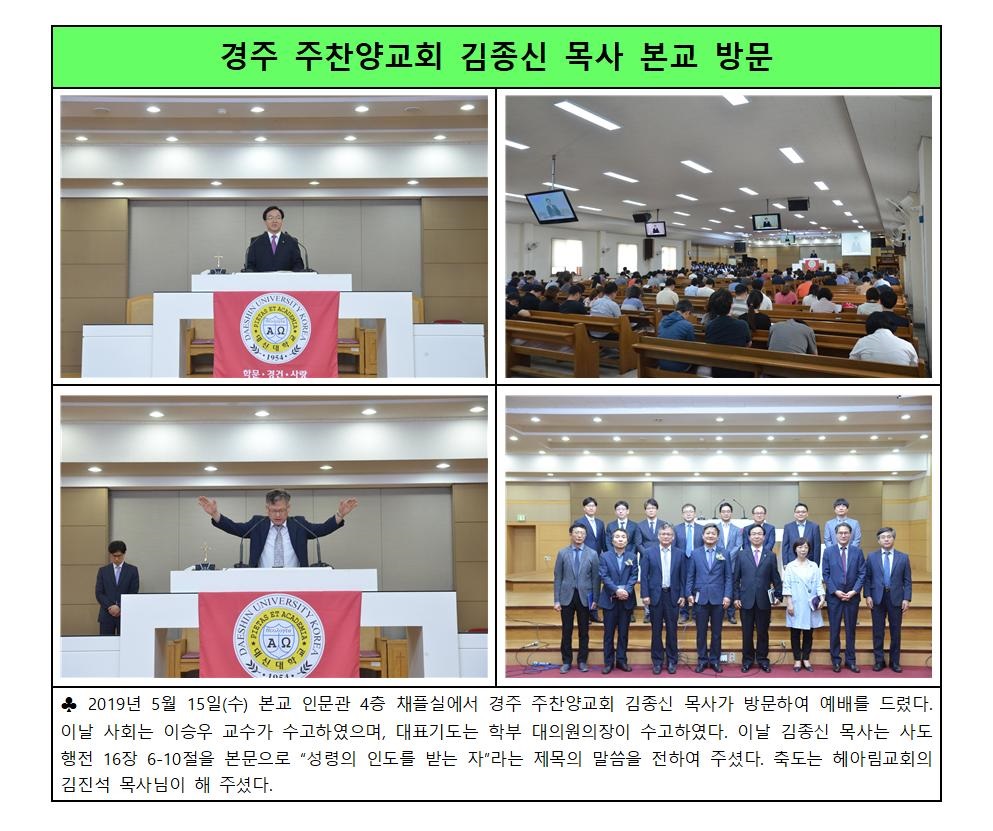 경주 주찬양교회 김종신 목사 본교 방문