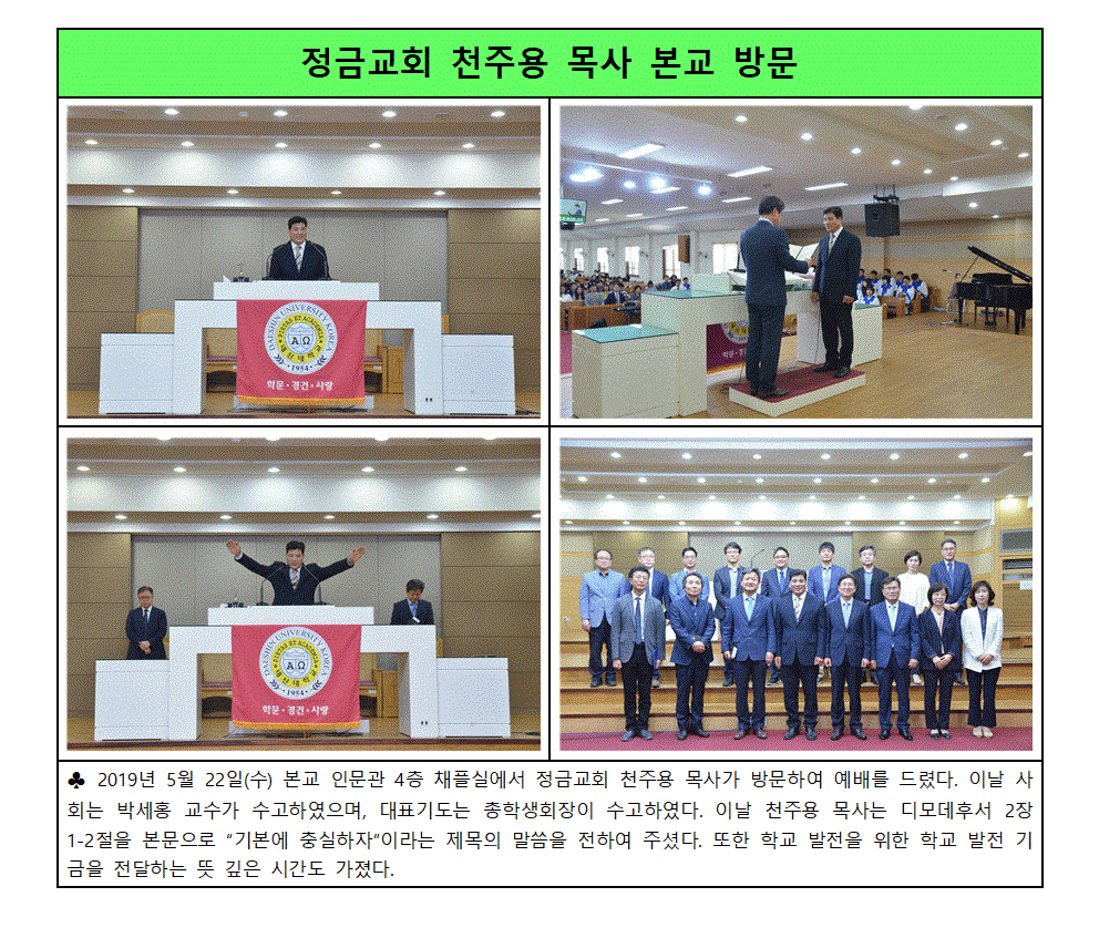 정금교회 천주용 목사 본교 방문