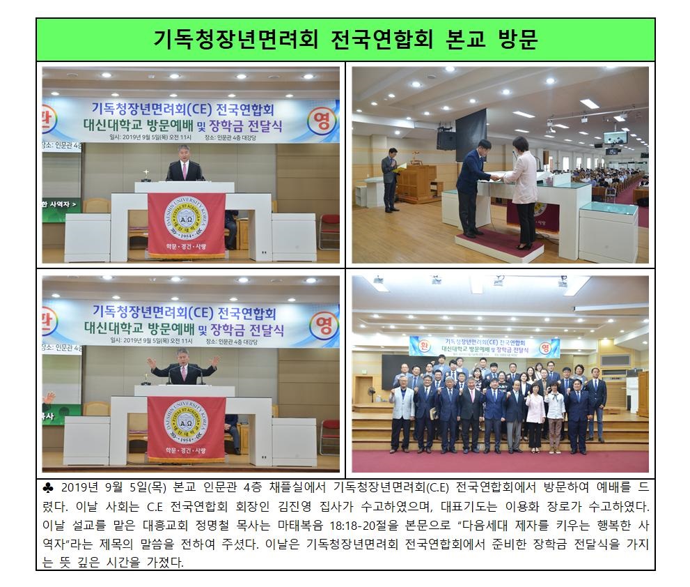 기독청장년면려회(C.E) 전국연합회 본교 방문