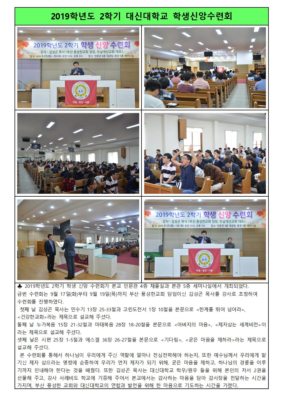 2019학년도 2학기 대신대학교 학생신앙수련회