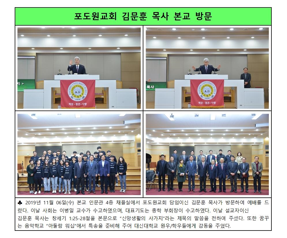 2019학년도 2학기 1일 신앙수련회(서울동산교회 남서호 목사)