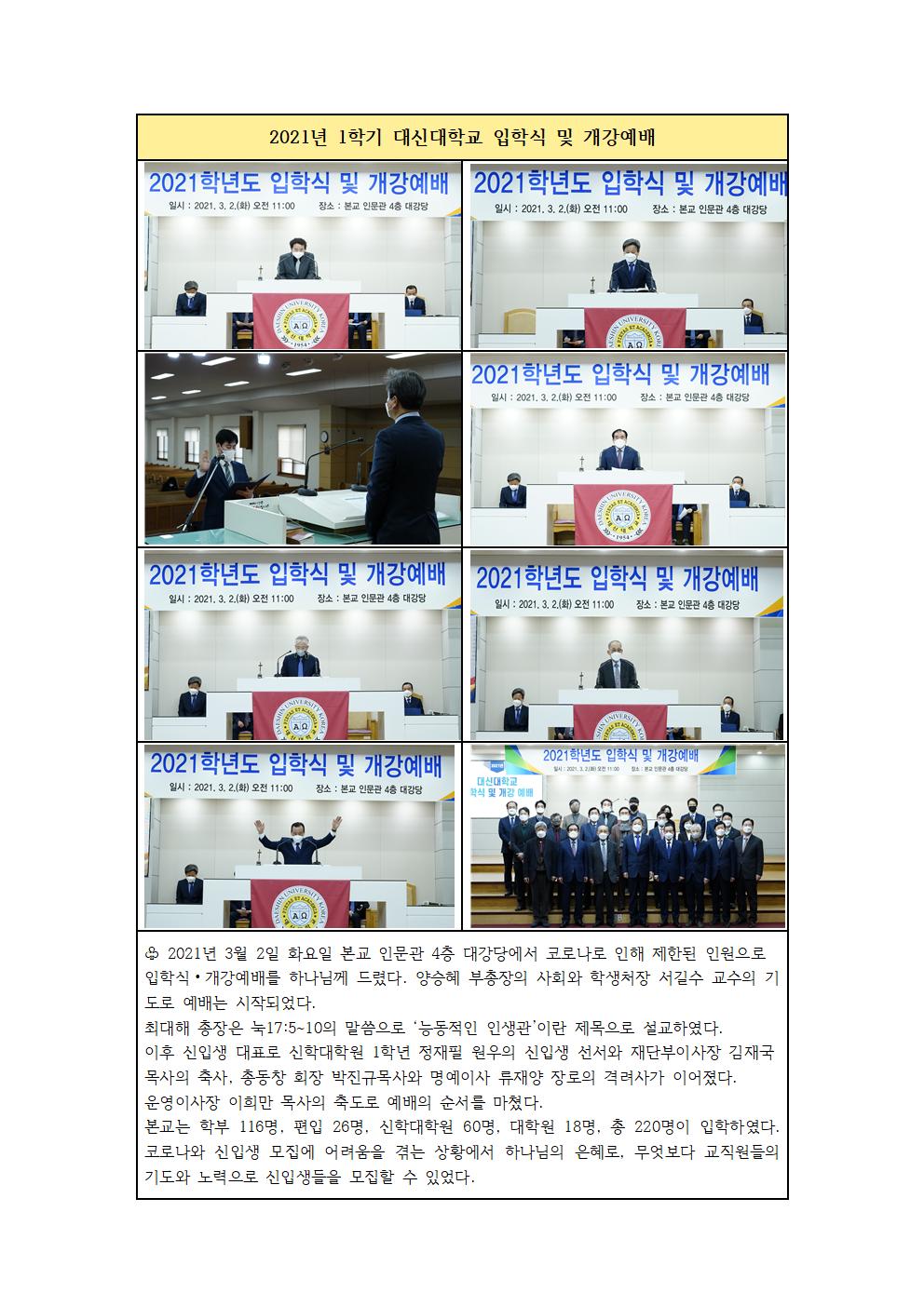 2021년 1학기 대신대학교 입학식 및 개강예배