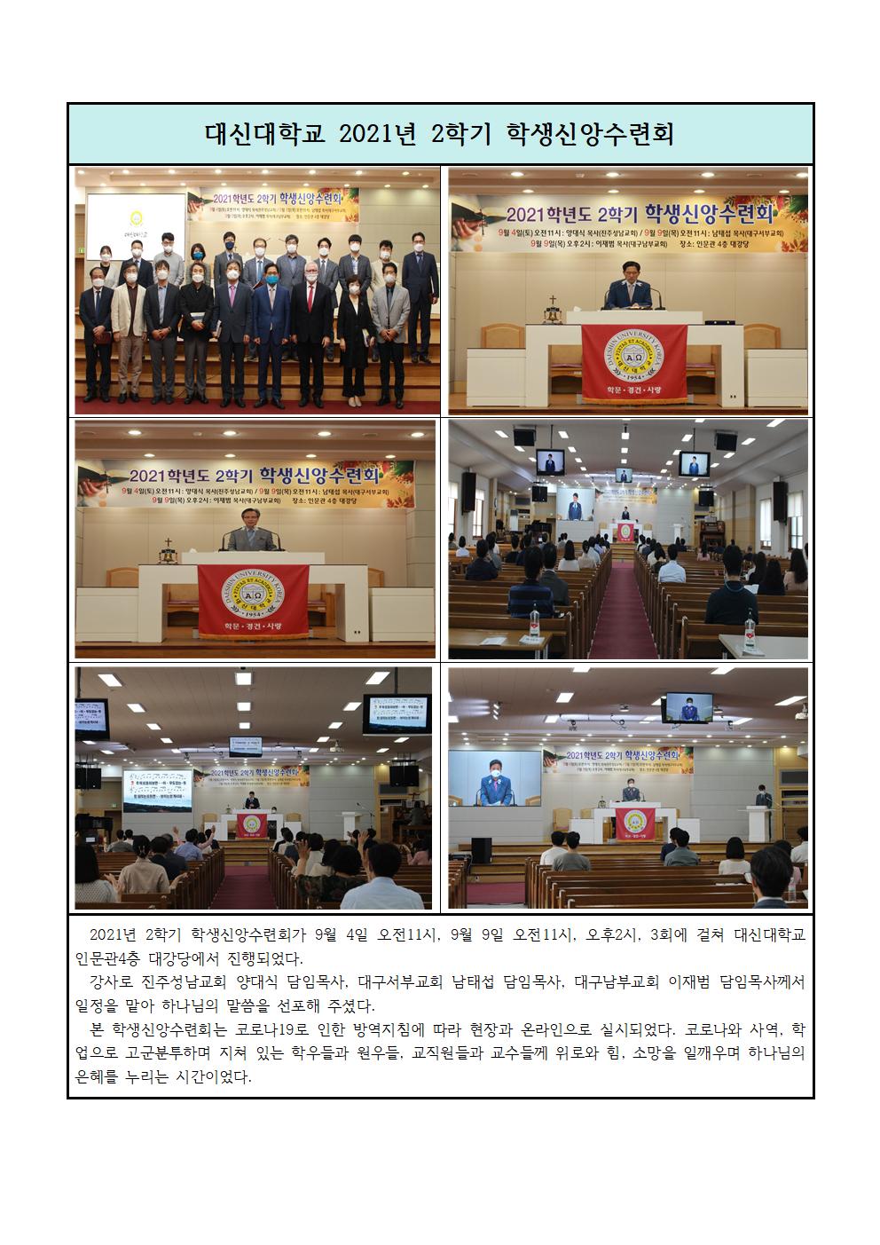 대신대학교 2021학년도 2학기 학생신앙수련회