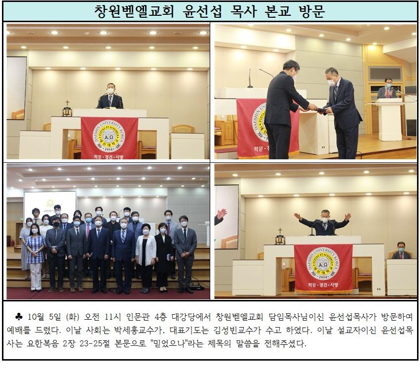 창원벧엘교회 윤선섭 목사 본교 방문