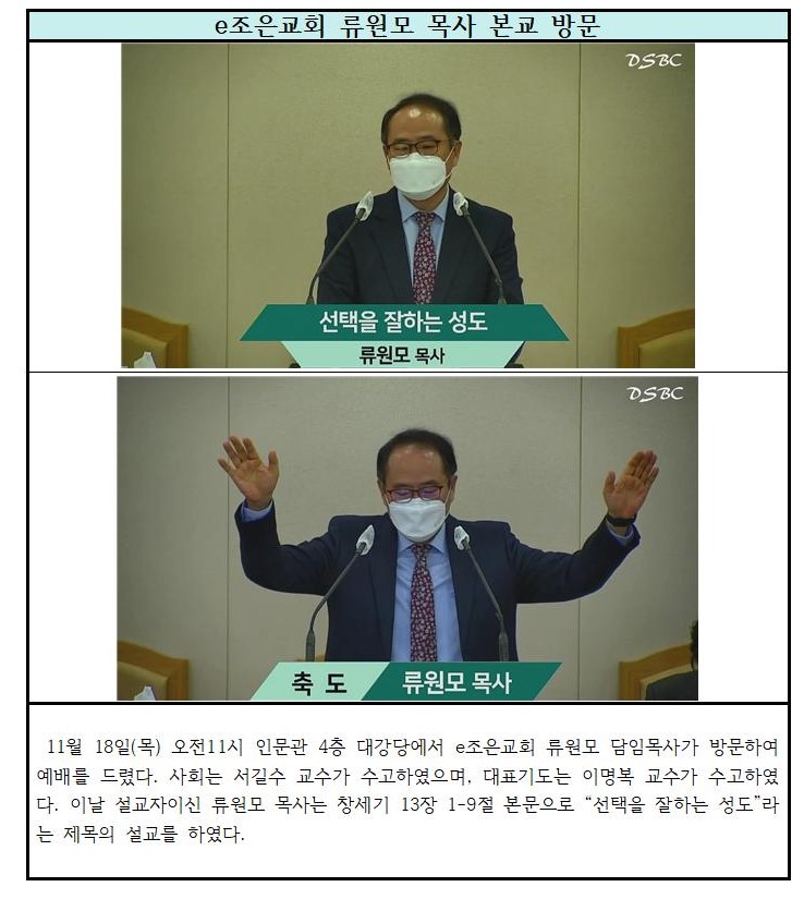 e조은교회 류원모 목사 본교 방문
