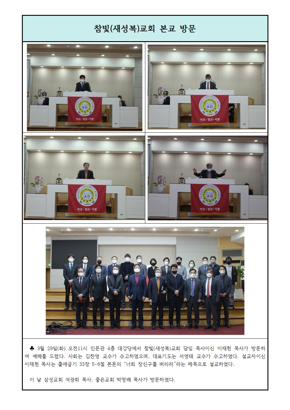 참빛(새성복)교회 이재천 목사 본교 방문