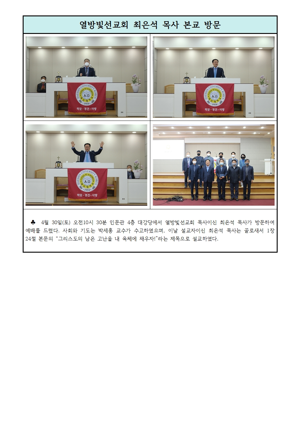 열방빛선교회 최은석 목사 본교 방문.hwp