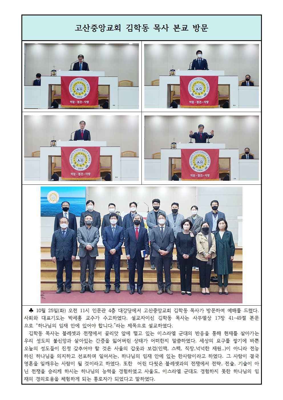 고산중앙교회 김학동 목사 본교 방문